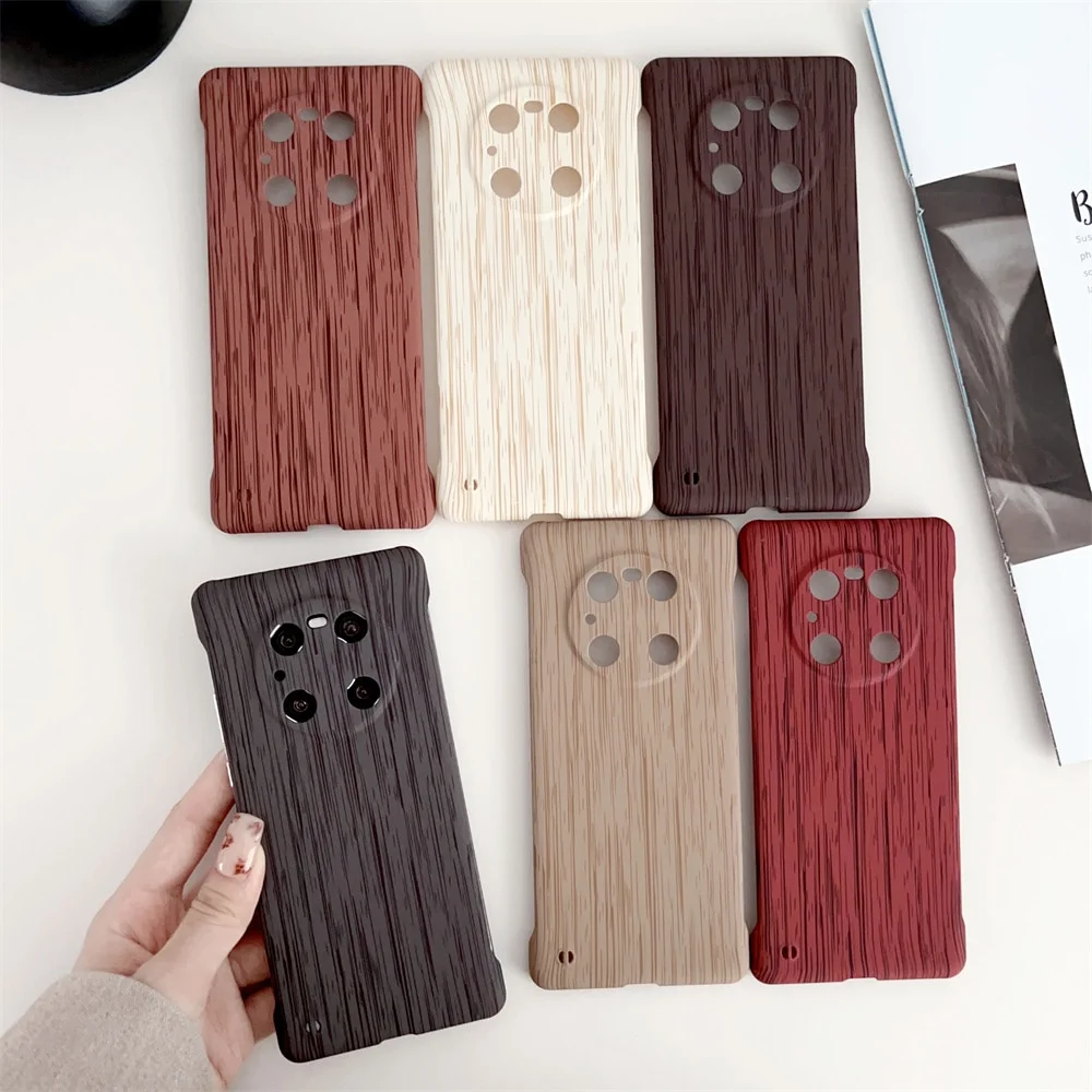 Wood Grain Borderless Back Phone Case For Huawei P60 P50 Pro Mate 60 50 30 40 Pro Honor 90 Camera Protection Armor PC Hard Cover