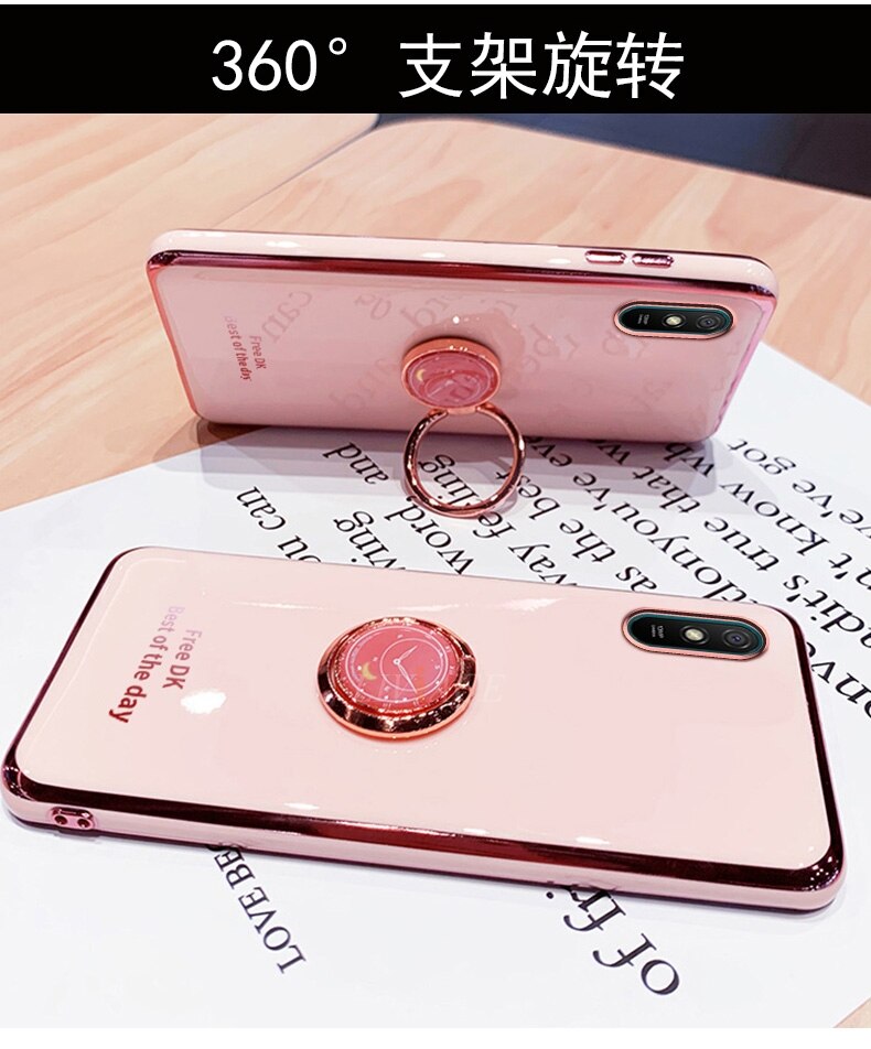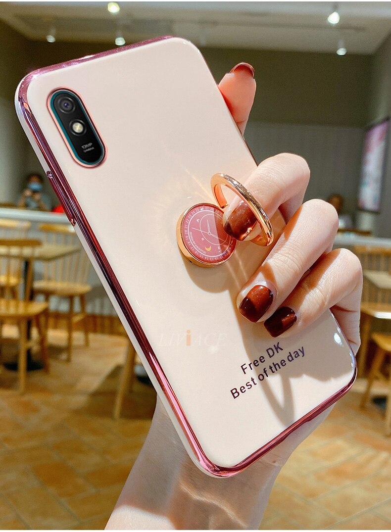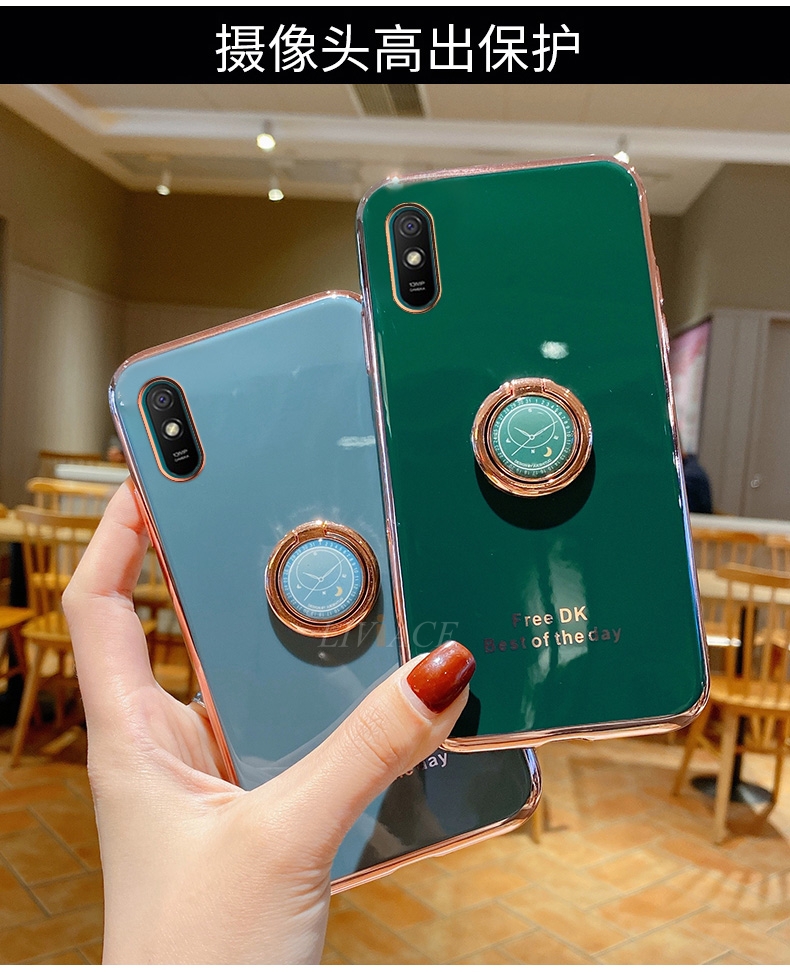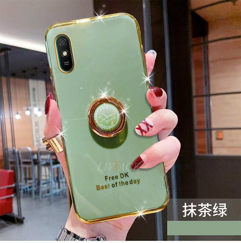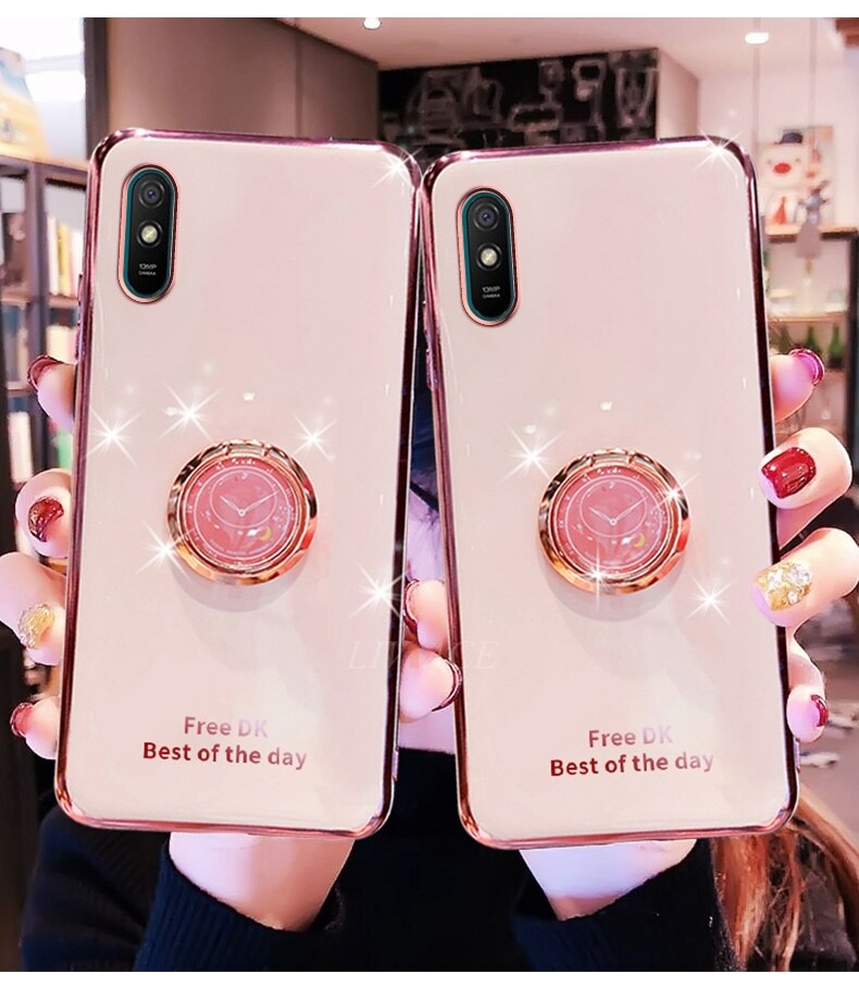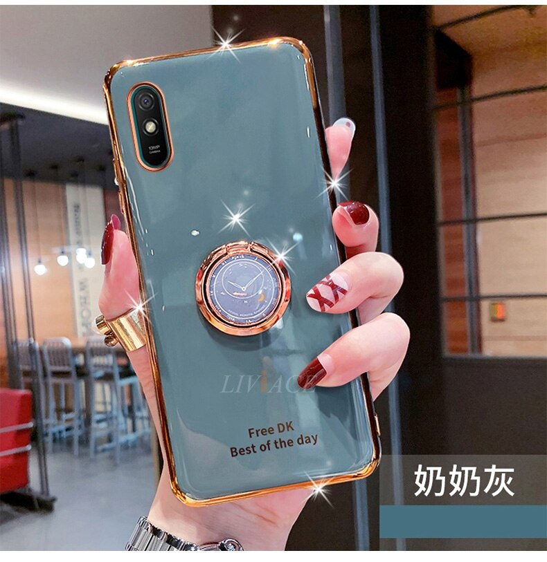 Ring Holder Soft Silicone Phone Case On For Xiaomi Redmi 9A 9AT Redmi9A Stand Luxury Plating Gold Bumper Back Cover Funda Shell
