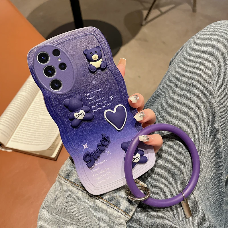 For Samsung Galaxy S23 Ultra Phone Case 3D Cute Cartoon Animal Fashion Soft Silicon Sport Hand Strap Bracelet Back Cover