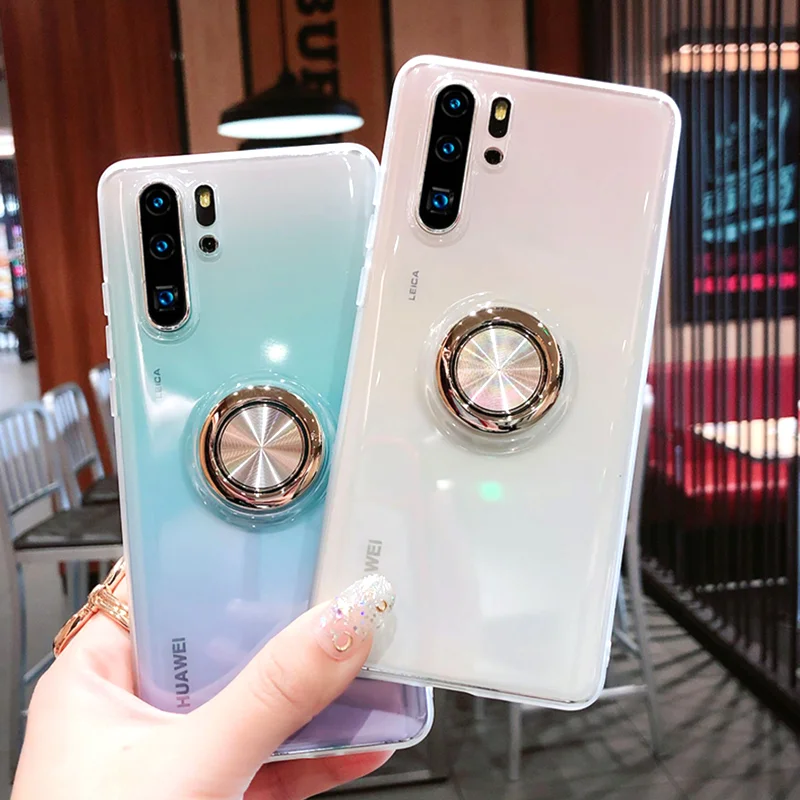 Transparent Silicone Magnetic Case For Huawei P30 P20 Pro Lite P30Pro P30Lite P20Pro P40Pro Soft Cover With Ring Holder Stand on